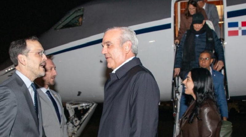 Al presidente le acompañan, los ministros, de la Presidencia, José Ignacio Paliza; de Relaciones Exteriores, Roberto Álvarez; de Educación, Luis Miguel De Camps; la directora de Ética e Integridad Gubernamental, Milagros Ortiz Bosch; y también su hija Esther Abinader, el jefe del Cuerpo de Seguridad Presidencial, Jimmy Arias, y sus asistentes Eilyn Beltrán y Noelia Shephard