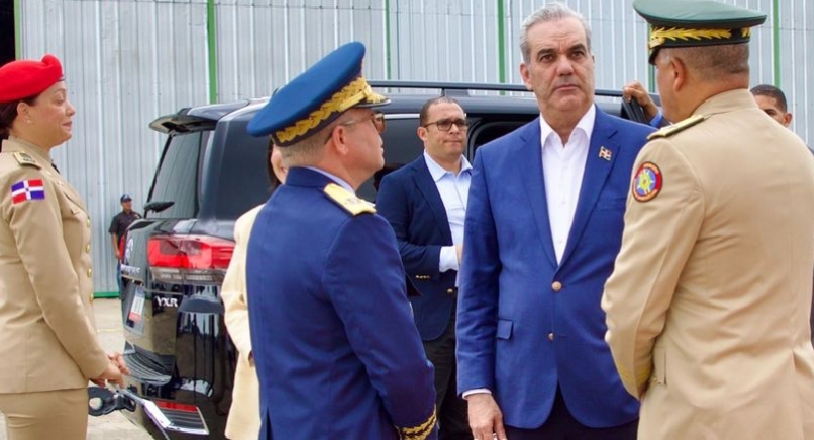 El mandatario llegó al país a las 4:00 de la tarde por la Base Aérea de San Isidro y, de inmediato, fue recibido por el ministro de Defensa, teniente general Carlos Antonio Fernández Onofre; el comandante general de la Fuerza Aérea, mayor general piloto Floreal Suárez Martínez; y el director de la Guardia Presidencial, general de brigada Guillermo Caro Cruz.