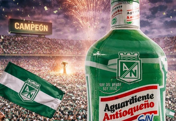 El corazón de esta alianza es una botella de edición limitada que captura la esencia de ambas instituciones. El diseño, en los característicos colores verde y blanco del Atlético Nacional, incorpora elementos gráficos que rinden homenaje a la historia del club y a la artesanía detrás del Aguardiente Antioqueño.