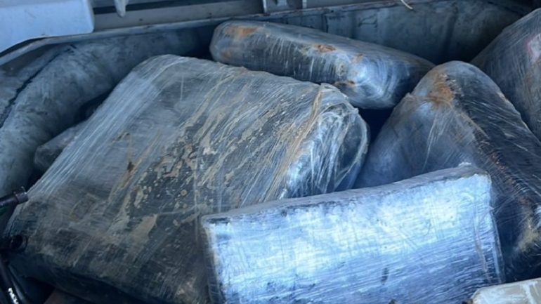 Durante la inspección del vehículo, los miembros del ERD detectaron un tanque adaptado en la parte inferior, dentro del cual fueron localizados diez paquetes de un vegetal de color verde, envueltos en cinta adhesiva y plástico negro, presumiblemente marihuana.