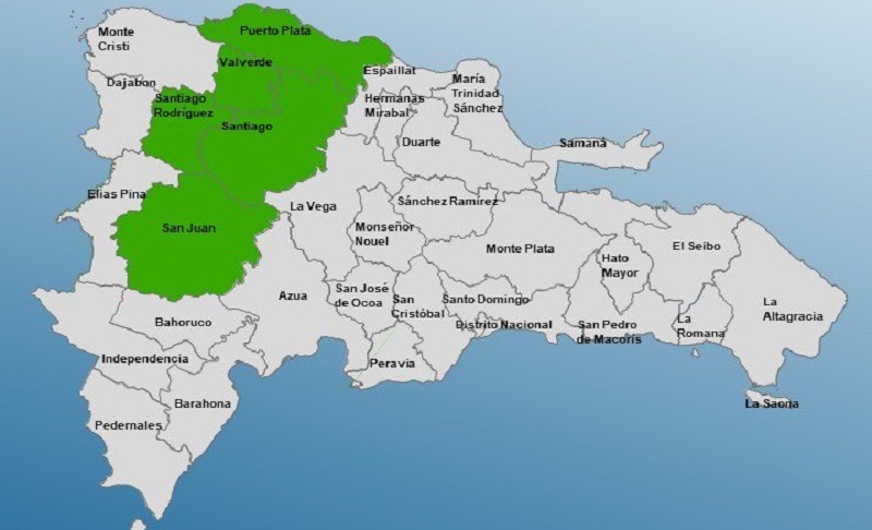 Las provincias bajo la alerta son: Santiago, Puerto Plata, Santiago Rodríguez, San Juan y Valverde.