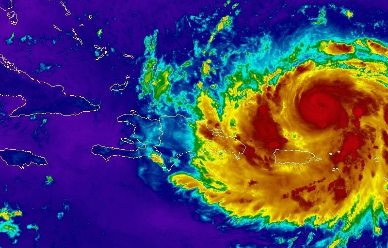 Santo Domingo (República Dominicana).- El huracán Erin, ahora categoría 3 en la escala de Saffir-Simpson, que se localizaba aproximadamente a 245 kilómetros al norte de San Juan, Puerto Rico y unos 290 al noreste de Punta Cana, se desplaza hacia el oeste/noroeste a una velocidad de traslación de 22 km/h. con vientos máximos sostenidos de 205 km/h, informó el Instituto Dominicano de Meteorología (INDOMET).