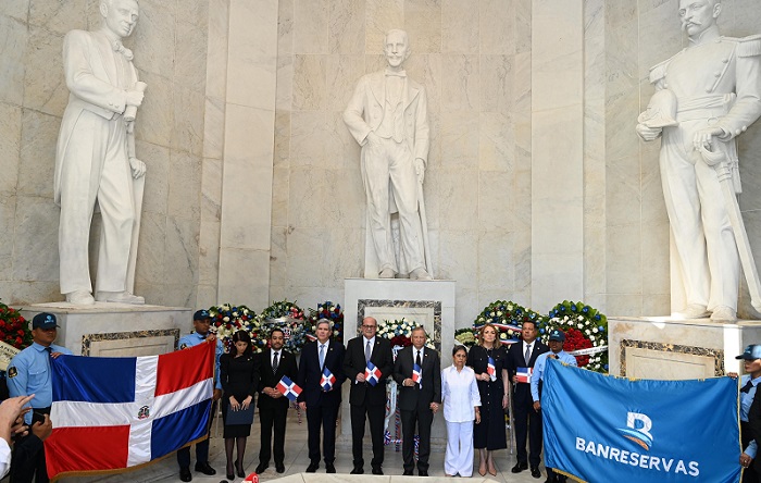 Santo Domingo (República Dominicana).- El Banco de Reservas depositó este miércoles una ofrenda floral en el Altar de la Patria, en conmemoración del 182 aniversario de la Independencia Nacional, para rendir homenaje a los Padres Fundadores de la República Dominicana.