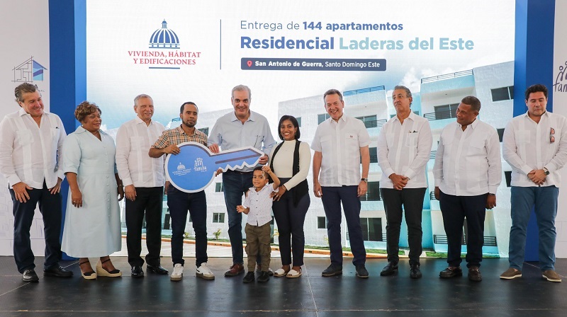 Santo Domingo (República Dominicana).- El Banco de Reservas financió la adquisición de 144 apartamentos correspondientes a la primera etapa del Residencial Laderas del Este, los cuales fueron entregados este domingo por el presidente Luis Abinader a igual número de familias.