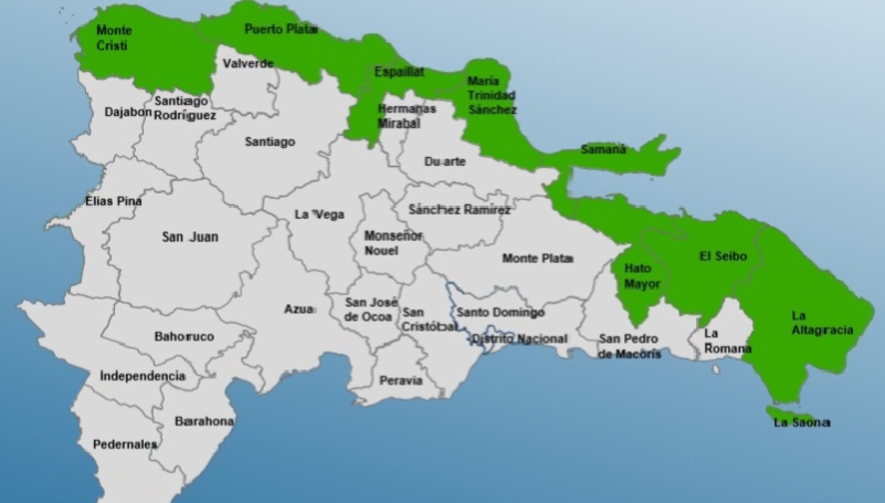 La alerta fue emitida para La Altagracia, Hato Mayor, Espaillat, Montecristi, El Seibo, Samaná, María Trinidad Sánchez y Puerto Plata.