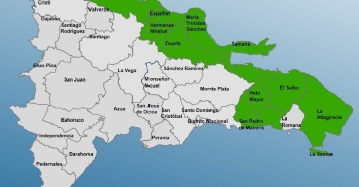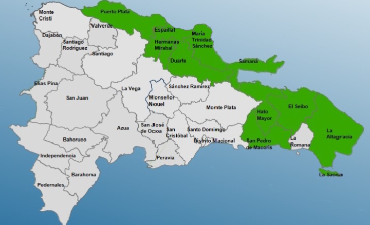 Las provincias afectadas por la alerta emitida incluyen Puerto Plata, Espaillat, Hermanas Mirabal, María Trinidad Sánchez, Duarte, Samaná, El Seibo, Hato Mayor, San Pedro de Macorís y La Altagracia.