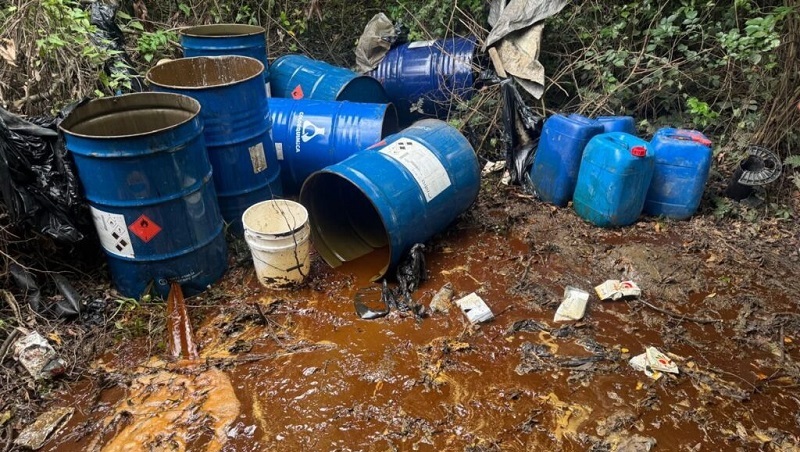 Durante el operativo, realizado en un terreno baldío, fueron decomisados 14 tanques, incluidos cuatro metálicos, así como cinco utilizados como alambiques, todos con capacidad de 55 galones cada uno, lo que totaliza aproximadamente 770 galones de alcohol adulterado en proceso de destilación.