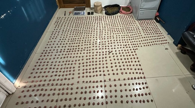 En el registro de la residencia se ocuparon 1.272 porciones de un vegetal que se presume es marihuana, con un peso aproximado de 10 libras (4.535 gramos), un paquete de la misma sustancia con un peso de 7 libras (3.175 gramos), una trituradora, una balanza digital, una tijera, un cuchillo y cinta adhesiva negra, así como dos celulares.
