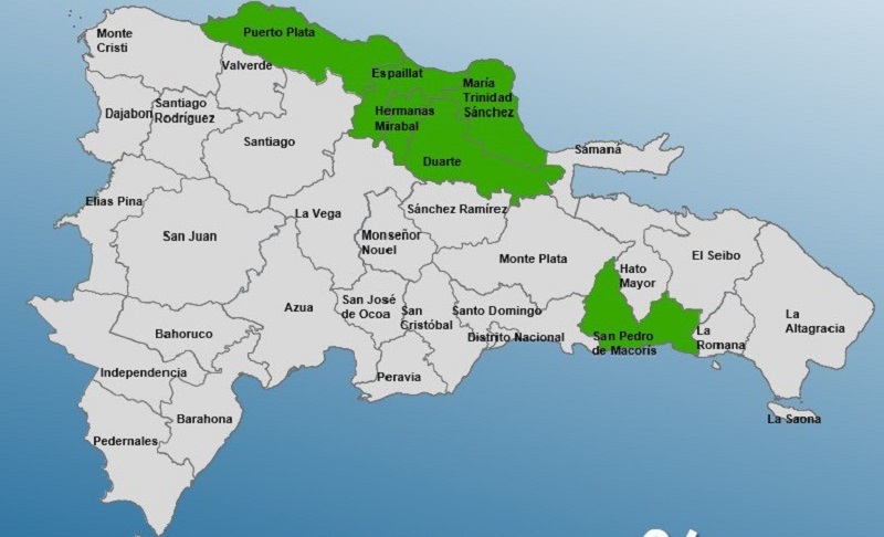 Las provincias bajo la alerta son: Espaillat, Duarte, María Trinidad Sánchez, Hermanas Mirabal, Puerto Plata y San Pedro de Macorís.