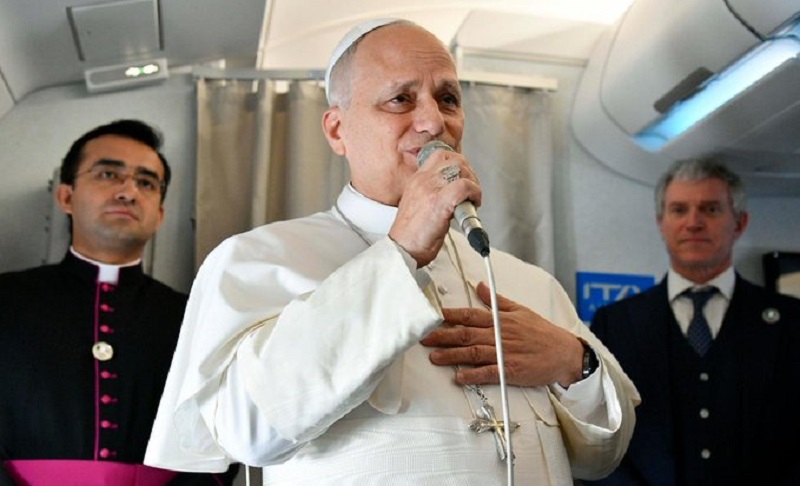 Durante el vuelo de ida a Argel, primera etapa del viaje apostólico a África, León XIV saluda a los cerca de 70 periodistas que le acompañan: «Es un viaje especial, el primero que quería hacer. Una oportunidad muy importante para promover la reconciliación y el respeto entre los pueblos». Al Pontífice le preguntan por las críticas que le ha dirigido Trump: «No quiero entrar en un debate. Mi mensaje es el Evangelio y sigo alzando la voz contra la guerra»