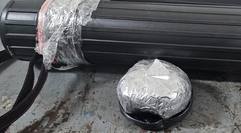 En un segundo operativo, realizado en el Inposdom, las unidades de la DNCD, apoyados por inspectores, intervinieron un paquete, donde se ocupó un portaplanos, conteniendo dentro (oculta) una porción de cocaína, con un peso preliminar de 385 gramos.
