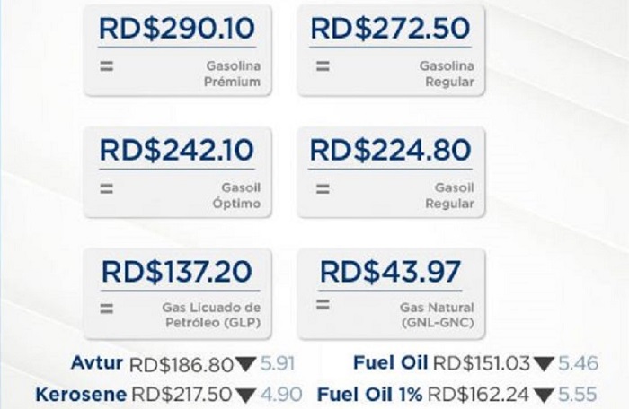 Para esta semana, se dispone un subsidio de al Gas Licuado de Petróleo (GLP) en RD$7.42 por galón, al Gasoil Regular en RD$8.52 por galón y al Gasoil Óptimo en RD$6.88 por galón
