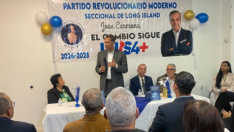 Nueva York.- El dirigente político Guido Gómez Mazara presentó en la seccional del Partido Revolucionario Moderno (PRM) en Long Island, José Carmona, la segunda edición de su obra «Transición Electoral 1966-1996».