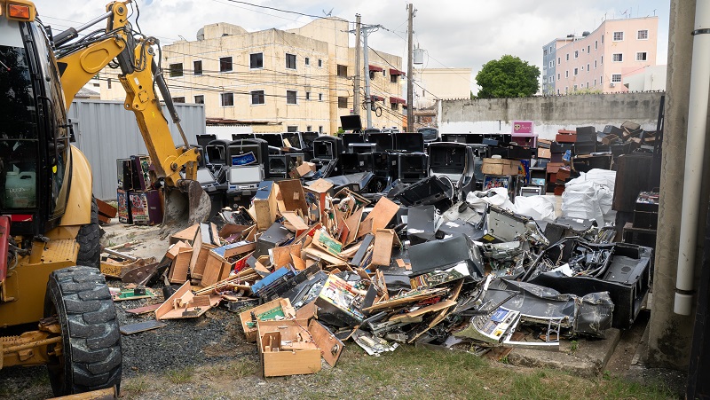 Santo Domingo (República Dominicana).- El Ministerio de Hacienda, a través de su Dirección de Casinos y Juegos de Azar (DCJA) destruyó este viernes 1.556 máquinas tragamonedas, dispositivos electrónicos y otros equipos decomisados por la institución, instaladas de manera ilegal en locales no autorizados y a su empleo en la venta ilegal de loterías.