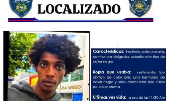 Santo Domingo (República Dominicana).-Miembros del Departamento Operativo II de Búsqueda de Personas Desaparecidas de la Policía Nacional localizaron en el municipio de Miches, provincia El Seibo, de un joven que había sido reportado como desaparecido desde principios del mes de abril en el sector de Villa Duarte, municipio Santo Domingo Este.