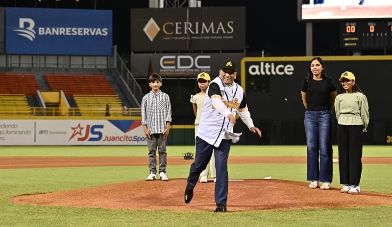 Santiago (República Dominicana).- El presidente ejecutivo del Banco de Reservas, Leonardo Aguilera, realizó este miércoles el lanzamiento de la primera bola del partido inaugural de la temporada 2025-2026 de la Liga Dominicana de Béisbol (LIDOM), efectuado en el Estadio Cibao, donde se enfrentaron las Águilas Cibaeñas y los Gigantes del Cibao.
