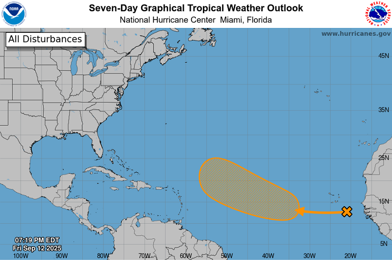 Miami.- El Centro Nacional de Huracanes de Estados Unidos (NHC, siglas en inglés) informó que una onda tropical ubicada entre la costa oeste de África y las Islas de Cabo Verde, está produciendo aguaceros y tormentas eléctricas desorganizadas sobre el extremo oriental del Atlántico.