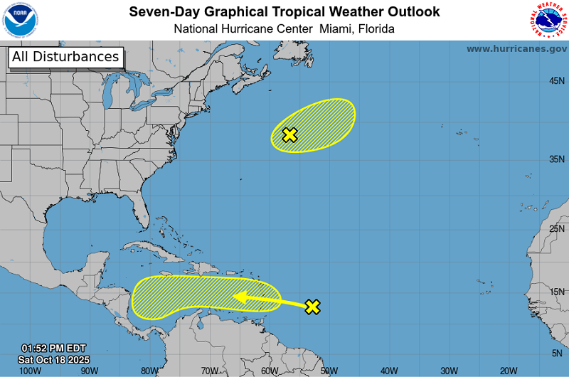 Por otra parte, el Centro Nacional de Huracanes de EEUU informó que un área no tropical de baja presión se encuentra a varios cientos de millas al noreste de las Bermudas. Hay una ligera probabilidad de que el sistema podría desarrollar algunas características subtropicales durante el próximo día o antes de que gire hacia el noreste en aguas del océano más frías el domingo.