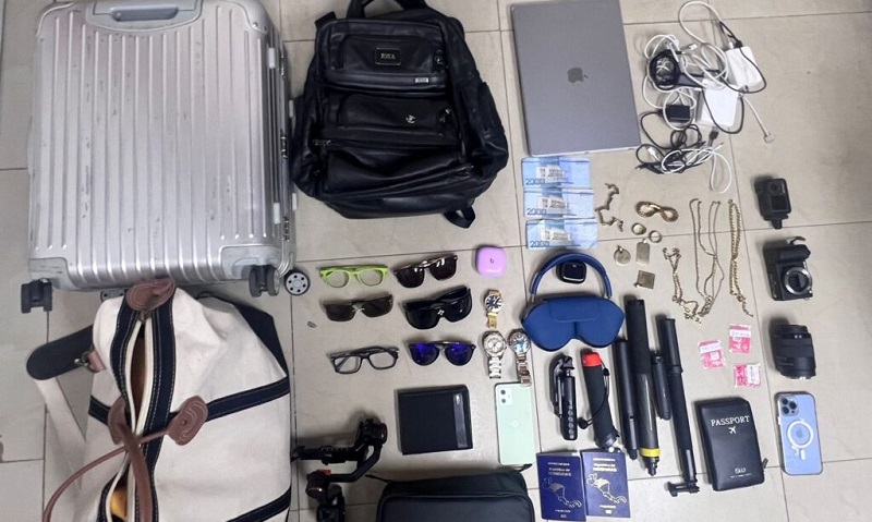 Durante el arresto se ocupó al detenido una mochila conteniendo en su interior una laptop, cámaras profesionales, micrófonos, estabilizadores, varias memorias microSD, audífonos, dos carteras con múltiples pasaportes hondureños, tarjetas bancarias de diferentes instituciones financieras, tres relojes, lentes, cadenas, celulares y RD$6.000.00 pesos en efectivo, además de numerosas prendas de vestir, entre ellas las observadas en los videos de vigilancia de las sucursales afectadas.