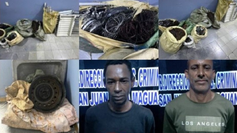 San Juan de la Maguana (República Dominicana).- Agentes de la Policía Nacional, en coordinación con el Ministerio Público, realizaron un allanamiento en una metalera ubicada en el centro de esta ciudad, donde detuvieron a dos hombres y ocuparon varios sacos y fundas con metales como cobre, aluminio y alambres eléctricos, material presuntamente ilícito.