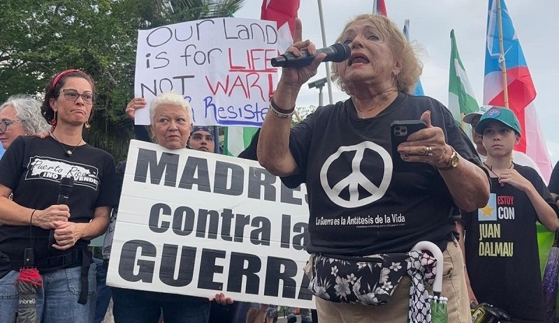 La manifestación, bajo el lema «No a las bases militares en Puerto Rico», fue convocada por Sonia Santiago, portavoz del colectivo Madres Contra la Guerra, quien demandó el cese de las operaciones que realizan las Fuerzas Armadas estadounidenses en la isla.