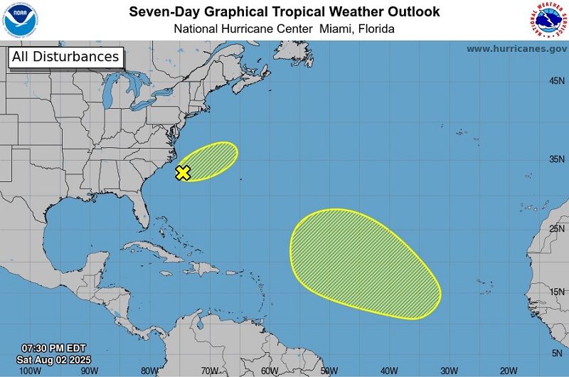Miami.- El Centro Nacional de Huracanes de Estados Unidos (NHC, siglas en inglés) informó este sábado que en el oeste del Atlántico, un área no tropical de baja presión se ha formado a lo largo de un límite frontal a unas 150 millas de la costa de Carolina del Norte.