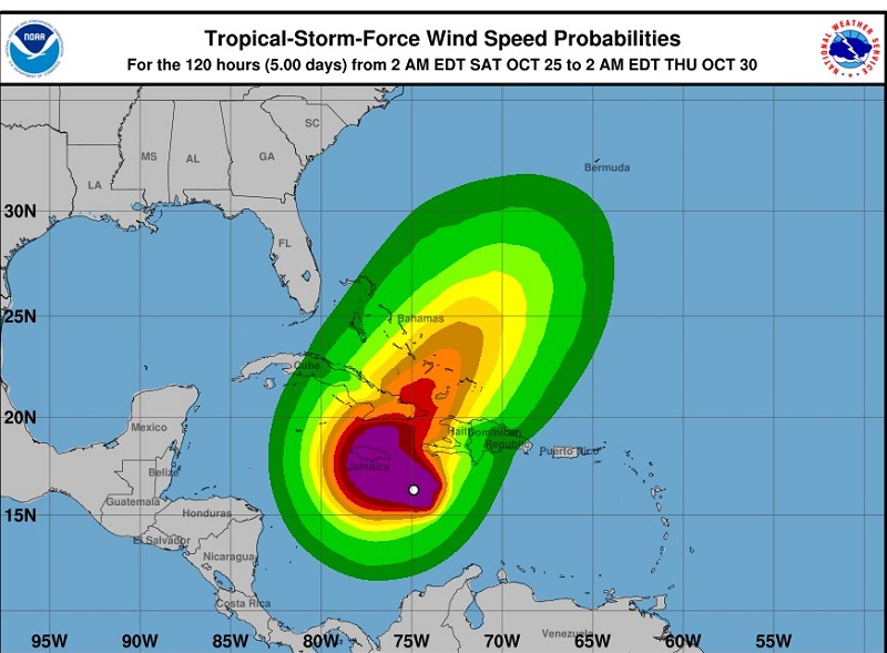 El domingo, se pronostica que Melissa evolucione a huracán mayor en las cercanías de Jamaica, superando los 178 km/h en sus vientos máximos sostenidos. Además, estará alejándose del territorio nacional.