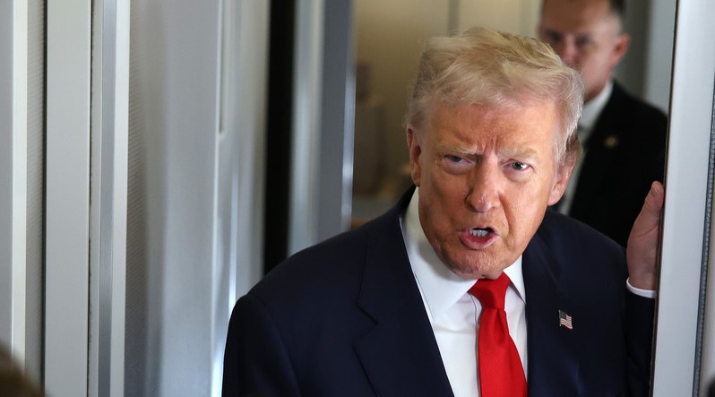 «Hay informes de que usted está considerando llevar a cabo ataques dentro de Venezuela. ¿Es eso cierto?», le preguntó una periodista al mandatario a bordo del avión presidencial. «No», respondió Trump. A continuación, ella le insistió en si había «tomado una decisión al respecto». «No, no es cierto», contestó el inquilino de la Casa Blanca.