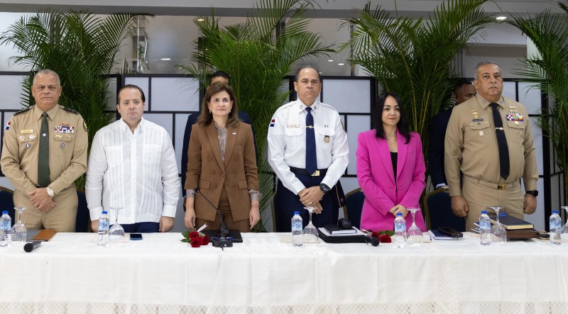 A la vicepresidenta le acompañaron la ministra de Interior y Policía, Faride Raful; el ministro de la Presidencia, José Ignacio Paliza; el ministro de Defensa, teniente general Carlos Antonio Fernández Onofre, y el director general de la Policía Nacional, mayor general Andrés Modesto Cruz Cruz, quien participó por primera vez de manera presencial en estas reuniones desde su designación en el cargo.