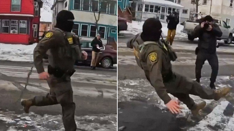 Redacción (RT.com).- Un agente estadounidense del Servicio de Control de Inmigración y Aduanas (ICE) protagonizó una aparatosa caída al perseguir inmigrantes en Minnesota. Mientras corría enfurecido en plena redada, pisó una superficie congelada en la calle y se cayó de espaldas. Las personas alrededor estallaron en risas y aplausos.